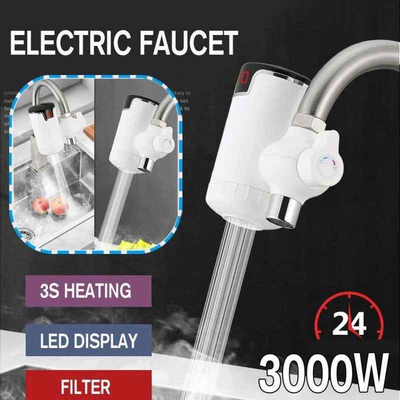 Tankless 3000W Electric Kitchen Water Heater Faucet 220V Plug-in LED Display Instant Hot Cold Warm Water Tap
