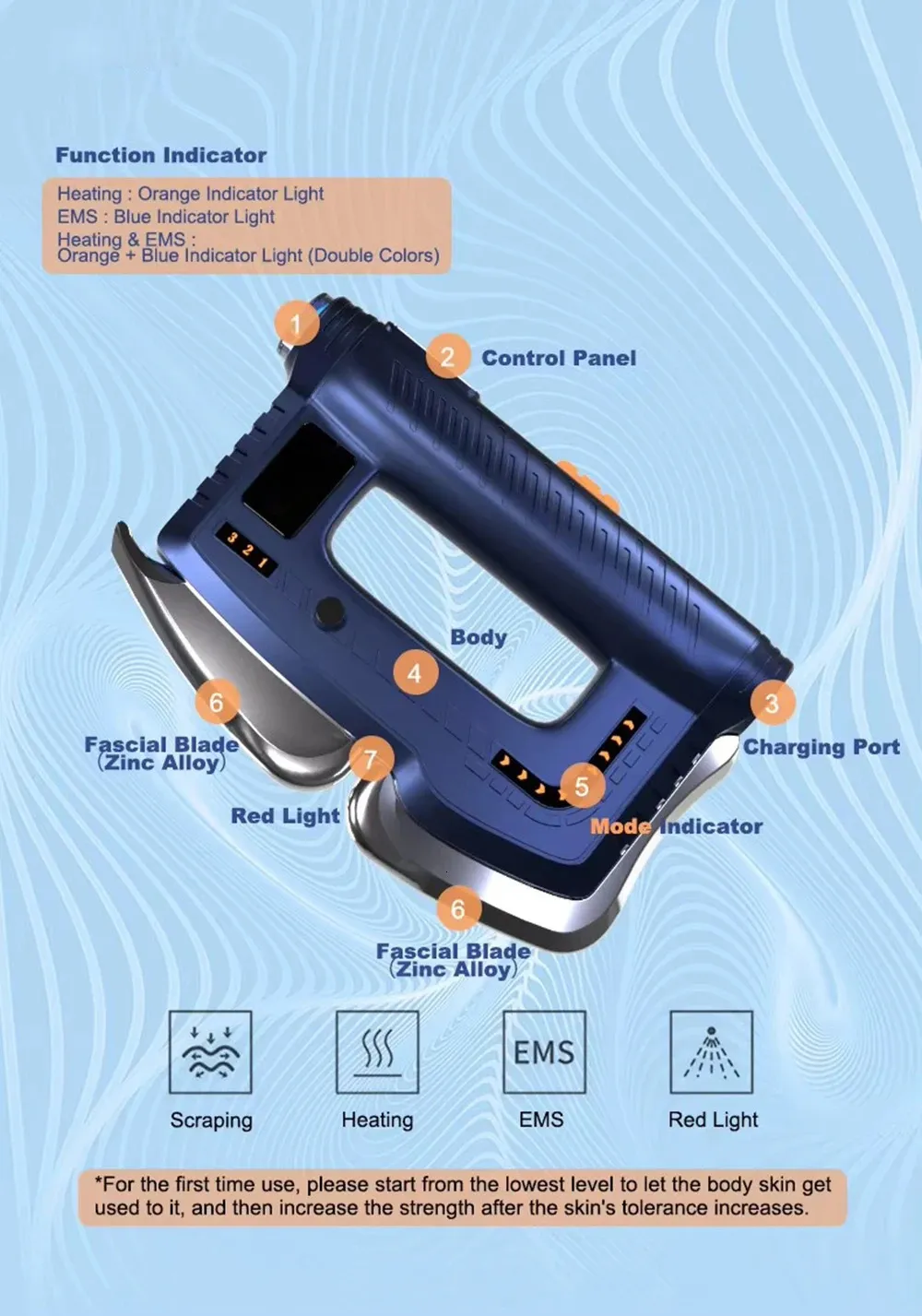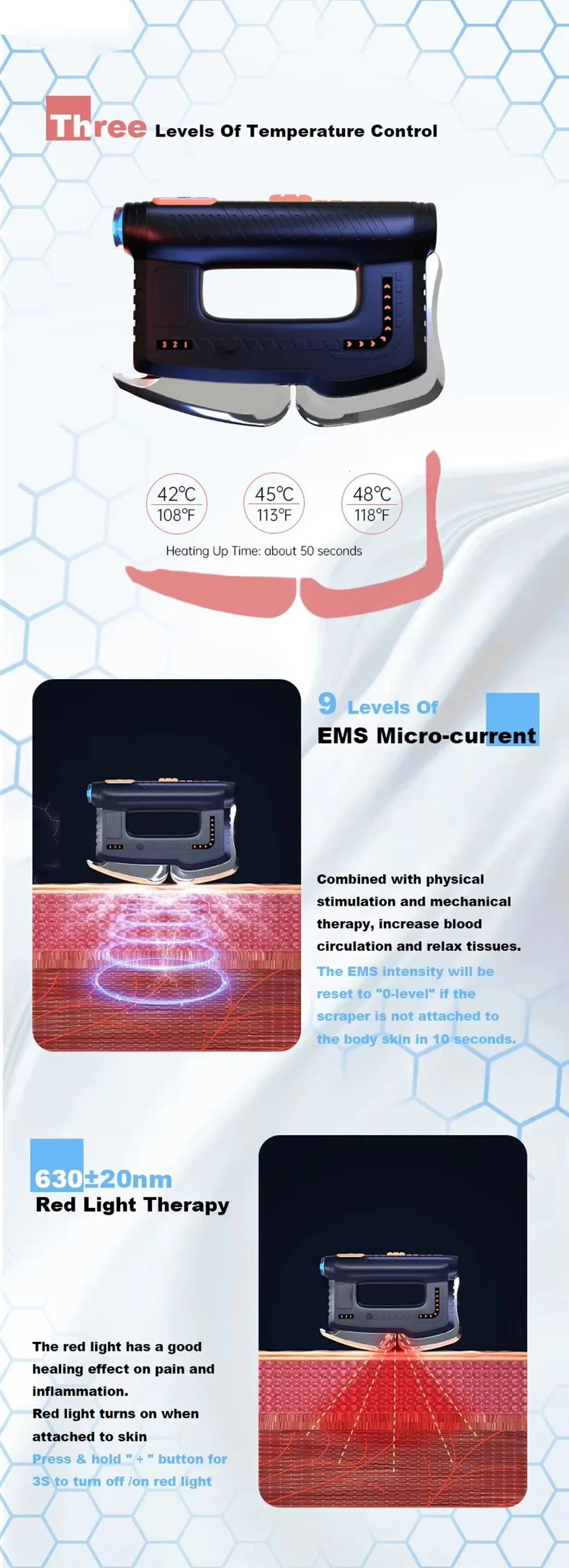 Fascia Gun Gua Sha Scraping Massager EMS Red Light Heated Therapy Tool Electric Muscle Scraper with Heat Back Massager