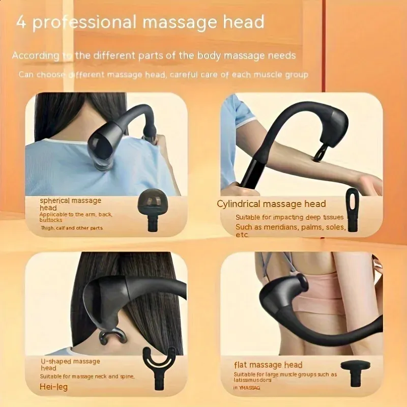 Electric Fascia Gun Massage Hammer Deep Tissue Tapping Stick Extended Handle for Back Relaxation and Muscle Relief